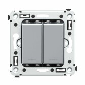 Инвертор двухклавишный в стену, "Avanti", "Закаленная сталь"