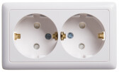 РА16-155 Розетка открытой установки, двухместная, с заземляющим контактом, с монтажной пластиной, цвет белый