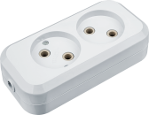 Колодка розеточная, 2 розетки, 16А, б/з, IP20, пластик, белая, K-2