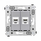 Телефонная розетка RJ-12 без шторки в стену двойная, "Avanti", "Белое облако"