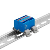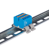 Блок распределительный с гориз. адаптером на рейку шириной 35мм, зажим push-in, 6 точек подключения 2,5 кв.мм, синий