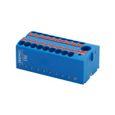 Блок распределительный, зажим push-in, 1 ввод 6 кв.мм, 10 точек подключения 2,5 кв.мм, синий