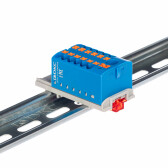 Блок распределительный с гориз. адаптером на рейку шириной 35мм, зажим push-in, 1 ввод 6 кв.мм, 12 точек подключения 2,5 кв.мм, синий