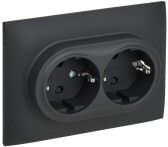 12-2108-06 ЭРА Розетка 2X2P+E Schuko со шторками, 16A-250В, IP20, Эра12, чёрный (10/100/1600)