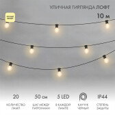 Уличная гирлянда Лофт 10м, черный каучук, 20 матовыx ламп x 5 LED, влагостойкая IP44