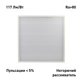 Светильник накл.LED 40Вт 4000K 3800Лм IP40 595х595х25 RA>90 с равномерной засветкой матовый SPO-1-40