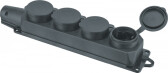 Колодка розеточная, 4 розетки, 16А, с/з, IP54, каучук, чёрная, с защитными крышками