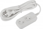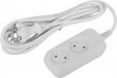 Удлинитель, 2 розетки, длина 3 м, 10А, ПВС 2х0,75 мм², б/з, IP20, термопласт, белый, У2
