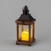 Декоративный фонарь со свечкой, корпус из дерева, размер 14x14x35cм, цвет теплый белый