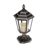 Декоративный фонарь на подставке со свечкой, бронзовый корпус, размер 14,5x17x31см, цвет теплый белый