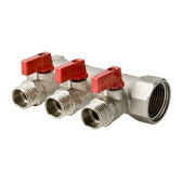 Коллектор 1" х 1/2 " GF, регулир., на 2 выхода, красная. ручка НИКЕЛЬ