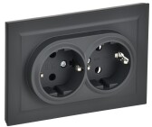 РОЗЕТКА двойная с з/к, в сборе, ГРАФИТ