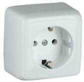 РА16-113 Розетка открытой установки, одноместная, с заземляющим контактом, с изолирующй пластиной, цвет белый