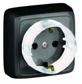 РА16-173-08 Розетка открытой установки, одноместная, с заземляющим контактом, с изолирующей пластиной, цвет черный