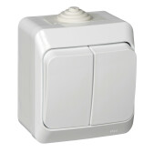 ВА10-251 Выключатель открытой установки, двухклавишный, брызгозащищенный, цвет белый