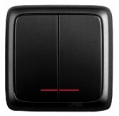 ВА10-154-08 Выключатель открытой установки, двухклавишный, с индикацией, с изолирующей пластиной, цвет черный