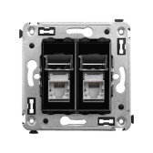 Компьютерная розетка RJ-45 без шторки в стену, кат.5e двойная экранированная, "Avanti", "Черный матовый"