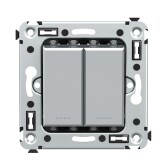 Переключатель двухклавишный в стену, "Avanti", "Закаленная сталь"