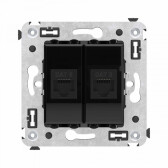 Компьютерная розетка RJ-45 без шторки в стену, кат.6 двойная, "Avanti", "Черный квадрат"