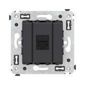 Компьютерная розетка RJ-45 без шторки в стену, кат.5e одинарная экранированная, "Avanti", "Черный матовый"
