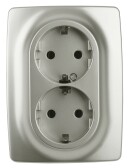РС16-381-06 Розетка скрытой установки, двухместная, с заземляющим контактом, цвет серебро