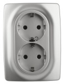 12-2106-03 ЭРА Розетка 2X2P+E Schuko, 16A-250В, IP20, Эра12, алюминий (10/100/1600)