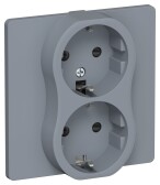 Розетка 2х2P+E со шторками сдвижная крышка в сборе 16А алюминий AtlasDesign