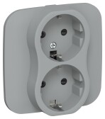 Розетка 2х2P+E со шторками в сборе Artistic безвинтовое крепление 16А РСш12-1-А-ФлС серый FLITE