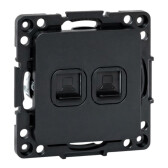 Компьютерная розетка RJ-45 без шторки в стену, кат.6А двойная экранированная, "Avanti", "Черный матовый"