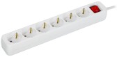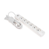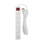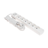 Удлинитель, 6 розеток, длина 5м, 16А, ПВС3х1 мм², с/з, IP20, пластик, белый, У06К-выкл.