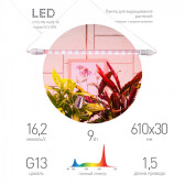 Светильник для растений, фитолампа светодиодная линейная ЭРА FITO-9W-Rb-Т8+FITO-Holder IP65 2хG13 с выключателем, 1.5м