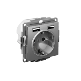 Розетка 2P+E с 2хUSB 5В/2,4А 2х5В/1,2А 16А сталь AtlasDesign