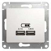 Розетка USB 2 порта A + A 5В/2,1А 2х5В/1,05А белый AtlasDesign
