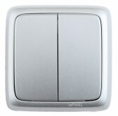 ВА16-153-06 Выключатель открытой установки, двухклавишный, с изолирующей пластиной, цвет серебро