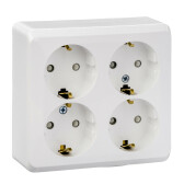 Розетка четырехместная 2P+E со шторками белый Этюд
