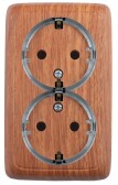 РА16-153-05 Розетка открытой установки, двухместная, с заземляющим контактом, с изолирующей пластиной, цвет дуб