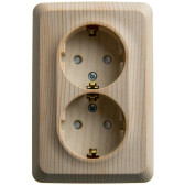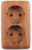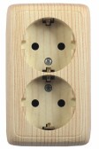 РА16-183-02 Розетка открытой установки, двухместная, с заземляющим контактом, с изолирующей пластиной, цвет сосна