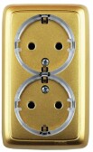 РА16-183-07 Розетка открытой установки, двухместная, с заземляющим контактом, с изолирующей пластиной, цвет золото