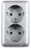 РА16-183-06 Розетка открытой установки, двухместная, с заземляющим контактом, с изолирующей пластиной, цвет серебро