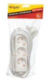 Удлинитель, 3 розетки, длина 1,5 м, 10А, ПВС 2х0,75 мм², б/з, IP20, термопласт, белый, У3