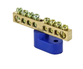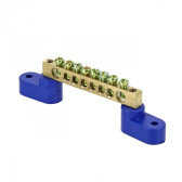 Шина N "ноль" 6х9мм 8 отв. синий на двух угл.изоляторах