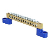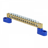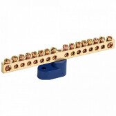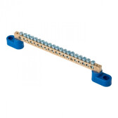 Шина N "ноль" 6х9мм 14 отв. синий на двух угл.изоляторах