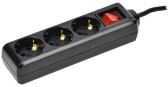 Удлинитель, 3 розетки, длина 5 м, 16А, ПВС 3х1,5 мм², с/з, IP20, пластик, черный, с выключателем, PREMIUM
