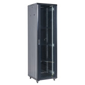 Шкаф напольный разобранный 19"" IT-CQE-N 42U 600x600мм, крыша с вырубкой, дверь стекло и сплошная металл, двойные боковые панели, черный RAL9005