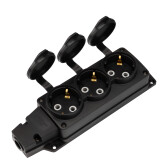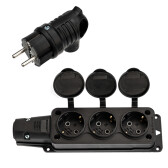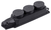 Колодка розеточная, 3 розетки, 16А, с/з, IP54, каучук, чёрная, с защитными крышками