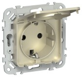 Розетка 2P+E IP44 с крышкой 16А РСшкр11-0-44-ФлЖК желтый карри FLITE
