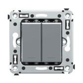 ARTGALLERY 2-клавишный ВЫКЛЮЧАТЕЛЬ КНОПОЧНЫЙ, 10АХ, механизм, быстрозажим. клем., БАЗАЛЬТ