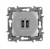 Розетка 2хUSB 240В/5В 2400мА алюминий Etika