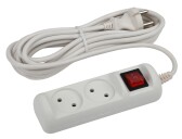 Удлинитель, 2 розетки, длина 3 м, 10А, ПВС 2х0,75 мм², б/з, IP20, термопласт, белый, У2