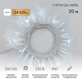 Гирлянда светодиодная Нить 20м 200 LED ТЕПЛЫЙ БЕЛЫЙ белый каучук IP67 постоянное свечение 230В соединяется нужен блок 315-001 NEON-NIGHT
